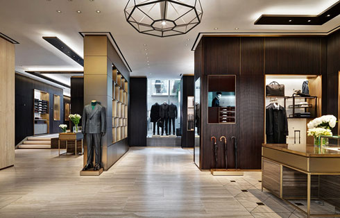 上海辦公室設計公司案例:店內(nèi)精致的展示柜代替?zhèn)鹘y(tǒng)櫥窗的概念。從入口到店內(nèi)的即視感是感性到理性的轉變。